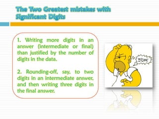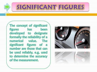 The document discusses significant figures and accuracy in measurements. It explains that: