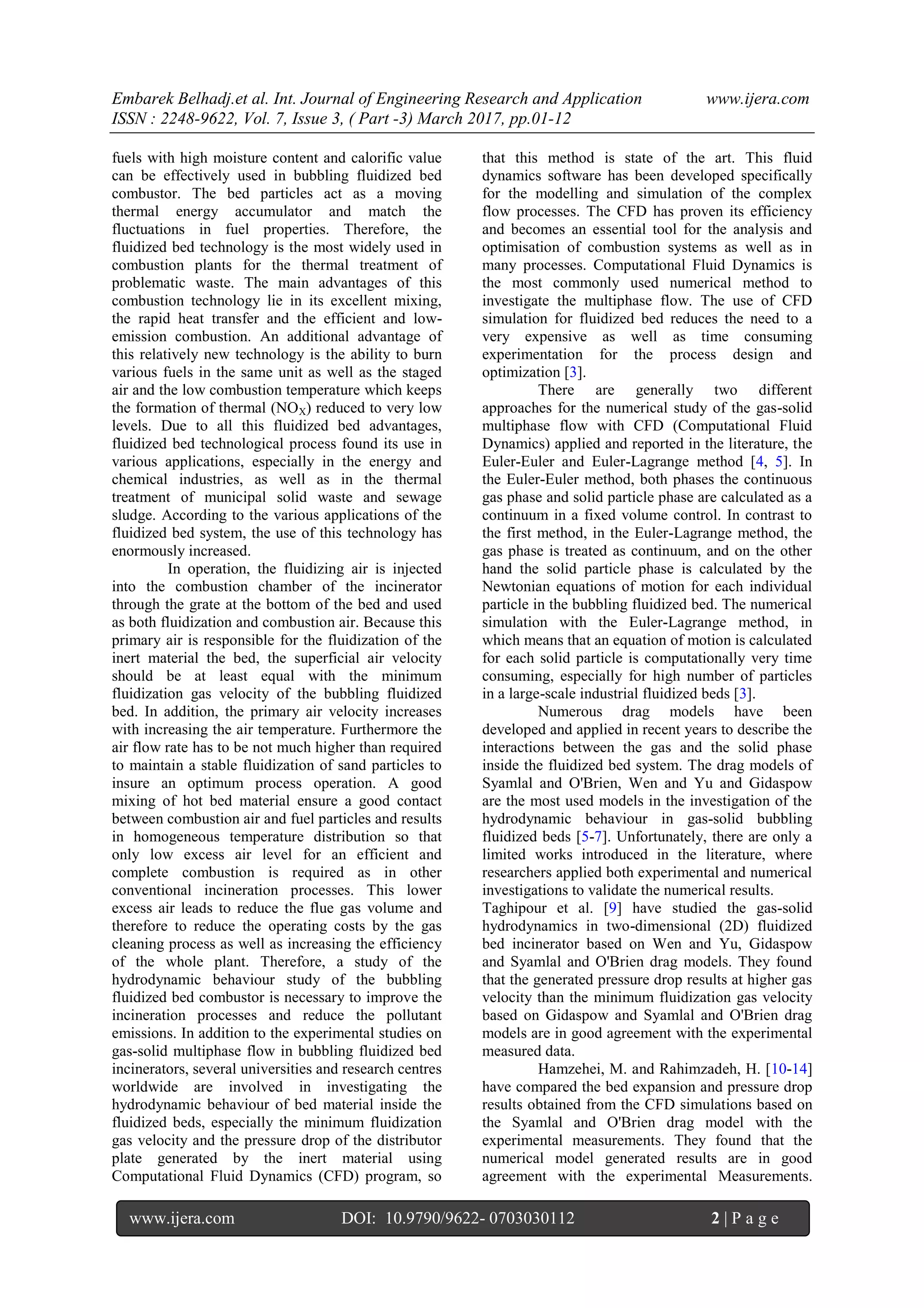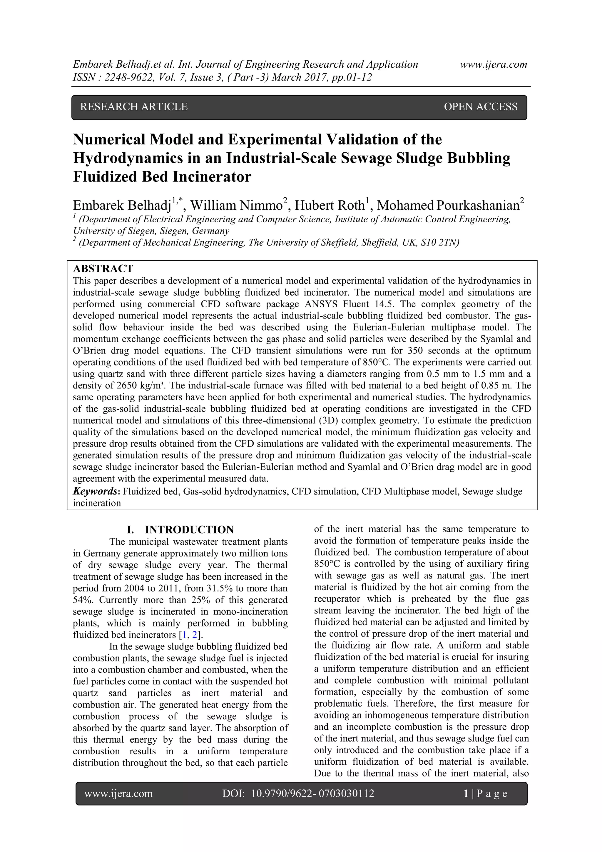 This paper presents the development and experimental validation of a numerical model for the hydrodynamics in an industrial-scale sewage sludge bubbling fluidized bed incinerator, utilizing ANSYS Fluent for simulations. The study investigates the gas-solid flow behavior in the combustor and validates simulation results against experimental data, ensuring accurate prediction of parameters such as minimum fluidization gas velocity and pressure drop. It highlights the efficacy of Eulerian-Eulerian multiphase modeling and the Syamlal and O'Brien drag model in predicting hydrodynamic conditions within the combustor.