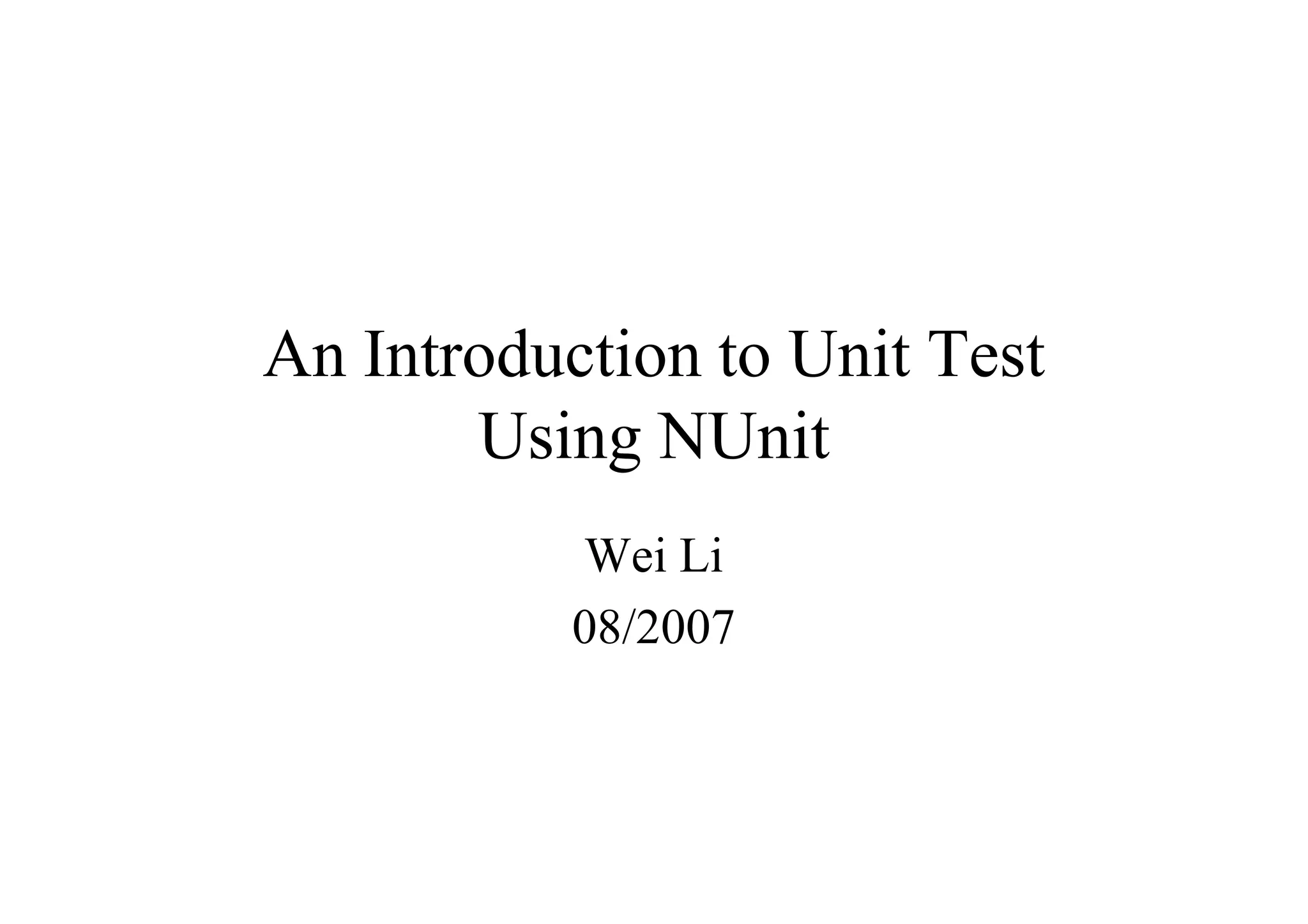 This document provides an introduction to unit testing using the NUnit framework. It defines unit testing as developer tests that validate code works as expected. Unit tests are part of the construction cycle and sit between technical design and QA testing in the software development lifecycle. Benefits of unit testing include early defect detection, better code design, regression protection, and learning new APIs. The document then describes NUnit attributes that mark test fixtures and methods. It also covers NUnit assertions for verification. Examples are provided of test-driven development and using NUnit for continuous integration.