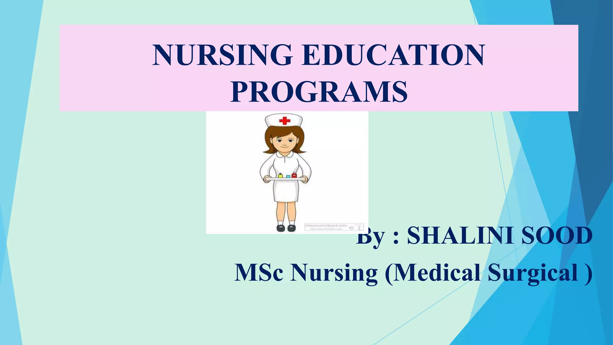 The document provides a comprehensive overview of nursing education programs in India, outlining various levels of nursing education including ANM, GNM, BSc, MSc, and doctoral programs. It discusses the significance of nursing as a profession, the core values associated with it, and the evolving nature of nursing education influenced by societal and healthcare changes. Additionally, it highlights the roles and objectives of different nursing programs and their eligibility criteria.