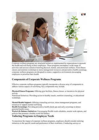 Corporate wellness programs are structured initiatives aimed at improving employees' health, happiness, and productivity within organizations. Effective programs include components like fitness initiatives, mental health support, and work-life balance, and should be tailored to meet employee needs while fostering a culture of wellness. By measuring effectiveness and integrating technology, employers can enhance participation and promote long-term well-being among employees.