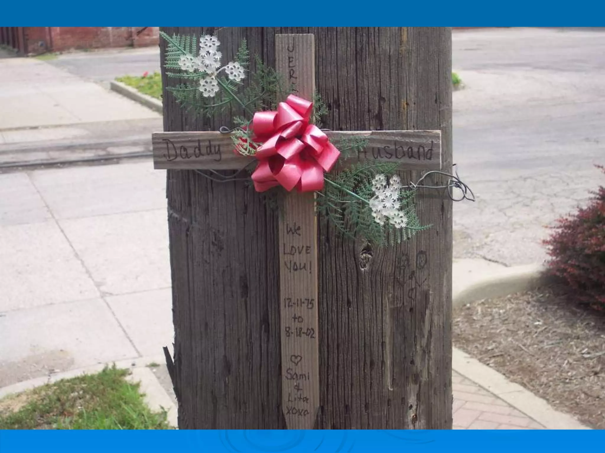 The document summarizes research on roadside memorials erected at sites of traffic fatalities. The researcher interviewed over 400 people involved in erecting 219 memorials. Most memorials were erected by female family members to commemorate a loved one. The researcher analyzed memorial contents and conducted interviews to understand the symbolic meaning and social functions of roadside memorials. Roadside memorials serve important grieving, commemorative, and civic purposes for those who erect them.