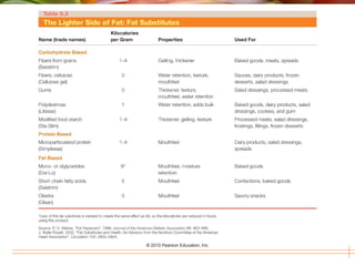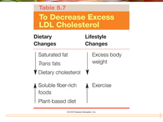This document discusses lipids, including fats, oils, and other compounds. It covers the main types of lipids like triglycerides, phospholipids, and sterols. It also discusses fatty acids and how they vary in length, saturation, and shape. The document then summarizes how dietary lipids are digested and absorbed through the small intestine with the help of bile and lipoproteins. Finally, it reviews the uses and recommended intake of lipids.