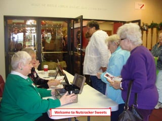 This document provides a map and description of the areas and rooms at The Church in Aurora that will be used for the Nutcracker Sweets Fine Arts & Crafts Festival. The festival will feature shopping and dining in areas like the Great Hall, Fellowship Hall, Hanson Hall, and the CE area on the upper level. Volunteers help prepare the various rooms and areas, assist crafters with setup and teardown, and staff the café and raffle during the two-day event.