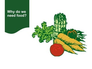 The document outlines key concepts of nutrition, including the definition of nutrients, their functions, and food sources. It emphasizes the importance of a balanced diet containing all 7 essential nutrients, and discusses the role of food in providing energy, growth, and disease prevention. Additionally, it addresses deficiencies caused by lack of specific vitamins and minerals and emphasizes individual energy needs based on various factors.