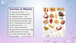 This document discusses nutrition and the human digestive system. It begins by explaining that living things need food to survive, which can be divided into 7 classes: carbohydrates, proteins, fats, vitamins, minerals, fibre, and water. It then goes into detail about each of these food groups, describing what they are made of and examples of foods that contain them. The document also discusses balanced diets, caloric values of different foods, and the human digestive system process from ingestion to absorption and defecation. Key parts of the digestive system and the roles of the mouth, stomach, small intestine and large intestine are outlined.