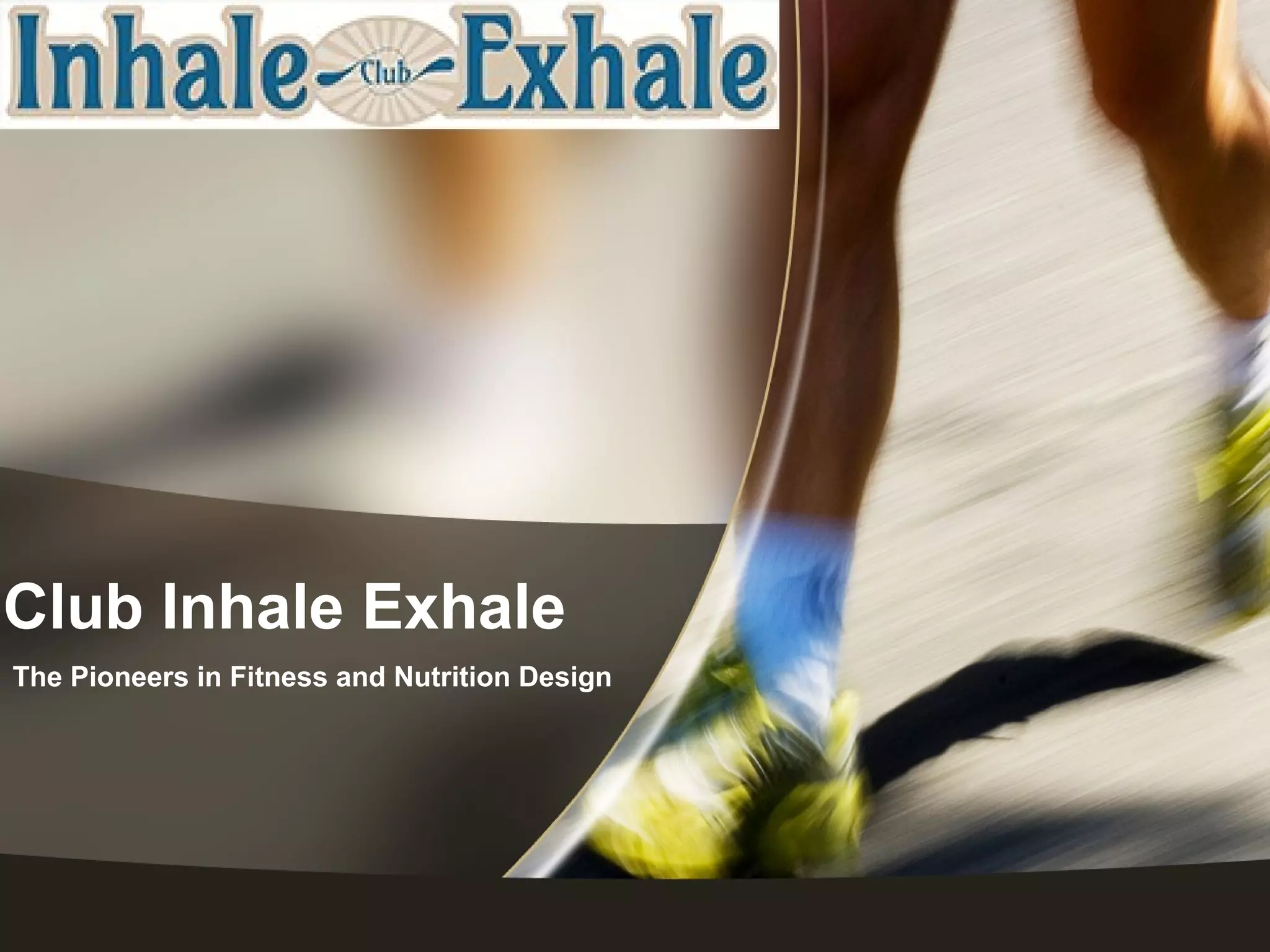 Club Inhale Exhale is a fitness and nutrition company that offers individualized nutrition coaching and programs. They provide nutrition plans tailored to each client's needs and goals. The company also hosts retreats focused on mind, body, and soul to help with weight loss and changing unhealthy thought patterns through professional coaching. Clients receive guidance on topics like eating disorders, stress management, and chronic dieting.