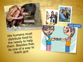 This document discusses the importance of a nutritious diet and healthy eating. It emphasizes that a nutritious diet contains vitamins, carbohydrates, minerals, water, and fiber to provide energy, support growth, maintain health, build strength, and control obesity. It then provides examples of healthy breakfast, lunch, and dinner meals for each day of the week. The document stresses the importance of donating excess food to the less fortunate and eating in moderation. Finally, it outlines some cultural norms and manners for eating among Malaysians of different ethnic backgrounds.