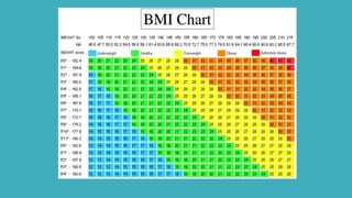 This document provides an overview of nutritional assessment. It discusses the goals of assessment as identifying malnutrition, obesity, and devising treatment plans. Assessment includes clinical history, physical exam, screening tools, anthropometrics, lab tests, and body composition analysis. Specific assessment measures are described in detail such as the subjective global assessment screening tool, body mass index, serum proteins, and creatinine tests. The document provides reference values and factors that influence various assessment markers.