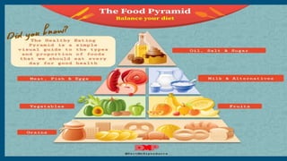 The document outlines the importance of nutrition for health, including the energy requirements for maintaining bodily functions and the factors influencing dietary intake. It discusses methods for assessing nutritional status and managing nutrition through diet and enteral or parenteral feeding, especially in patients with specific health conditions. Additionally, it covers the principles of medical nutrition therapy and the various complications associated with nutritional support methods.
