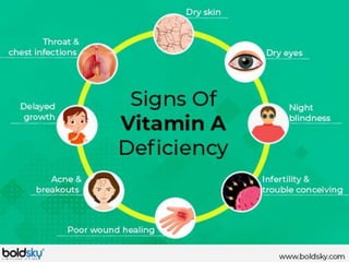 - Vitamin A deficiency which can cause night blindness and increased susceptibility to infections.