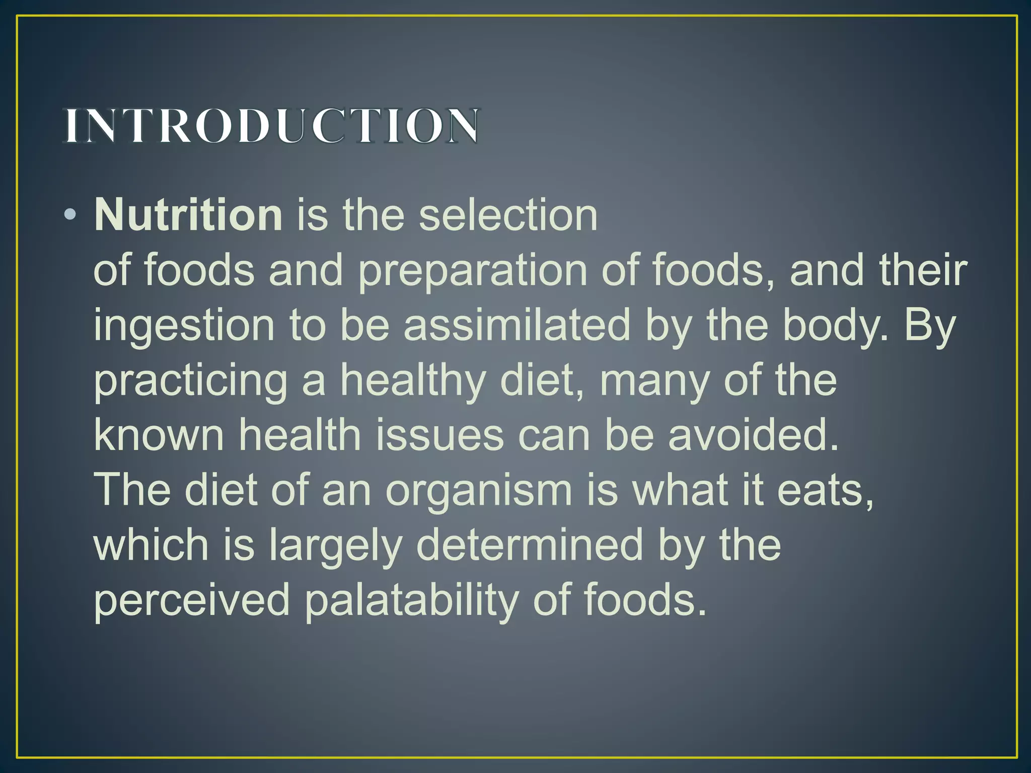 Nutrition is the selection and ingestion of foods to be assimilated by the body. A healthy diet can avoid many health issues. In 1747, Dr. James Lind performed the first scientific nutrition experiment, discovering that sailors given limes were cured of scurvy where others given other substances were not, though he did not know it was due to vitamin C. Various essential nutrients like vitamins, minerals, amino acids, and fats have been discovered and their roles in the body's processes have been elucidated from the 1930s to present.