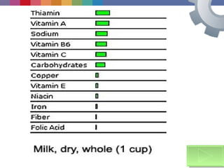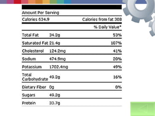 Nutrition is the study of food and how it nourishes the body and influences health. It covers nutrients like carbohydrates, fats, proteins, vitamins, minerals, and water. Nutrients provide energy, build cells, regulate processes, and prevent diseases. Nutrition is important for overall wellness. Dietary guidelines like the DRI and RDA help determine daily nutrient needs to support optimal health. Nutrients are broken down and absorbed differently, and all contribute to various bodily functions.