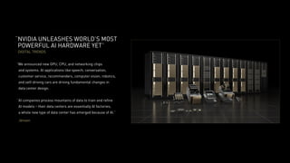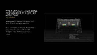 Promising to transform trillion-dollar industries and address the “grand challenges” of our time, NVIDIA founder and CEO Jensen Huang shared a vision of an era where intelligence is created on an industrial scale and woven into real and virtual worlds at GTC 2022.