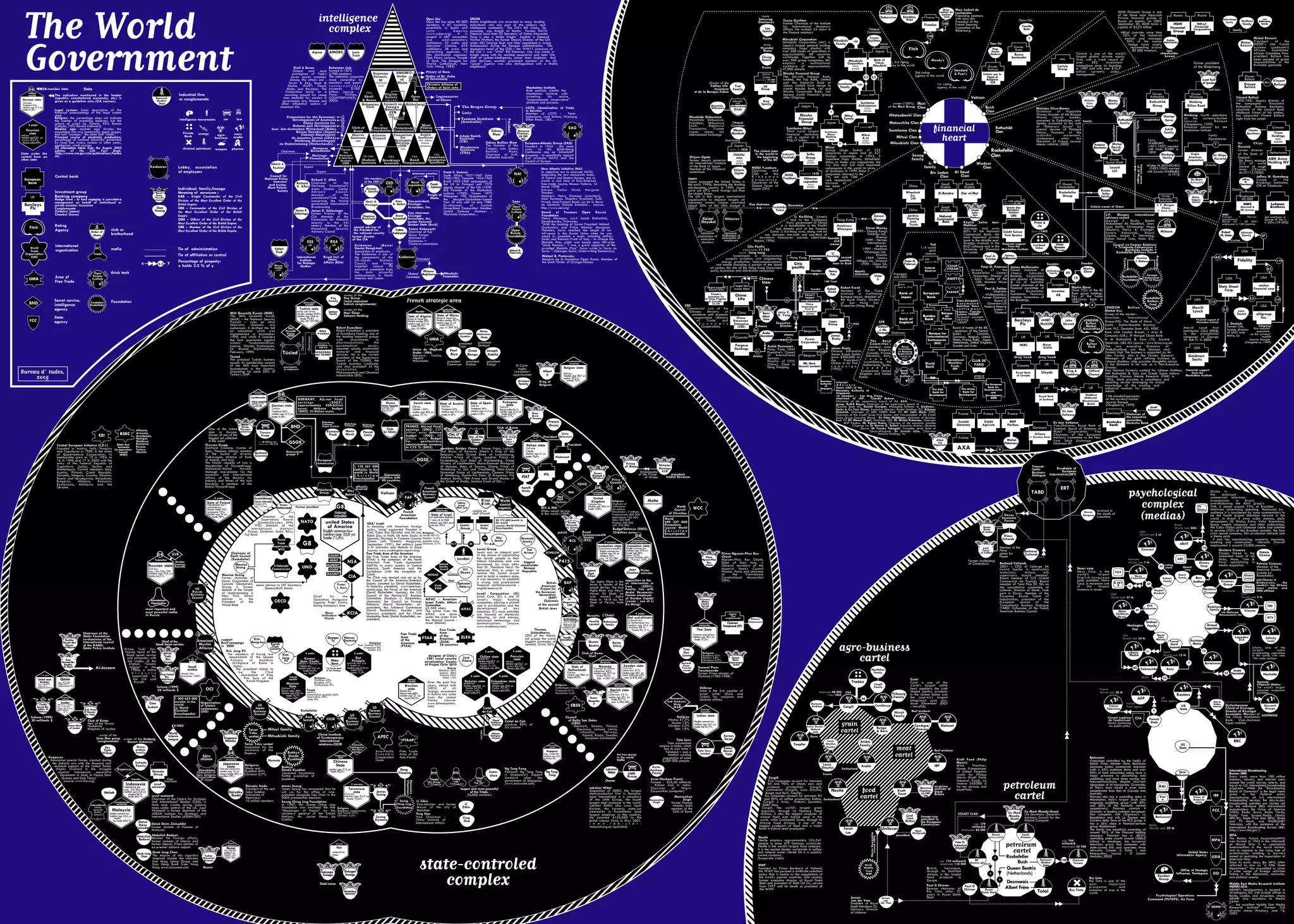 The document provides background information on various groups, organizations, families and individuals that have significant economic and/or political influence globally or in certain regions/countries. It mentions industrial conglomerates, private financial groups, secret societies at Yale University, international organizations, think tanks, private clubs, and prominent families primarily based in Europe, Russia, Japan, and the United States. The header indicates the information is from an August 2003 CIA Factbook, and is intended as a high-level overview and guideline rather than definitive classifications of countries and legal systems.