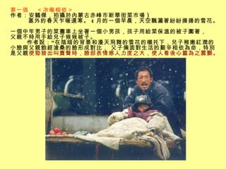 第二張 < 愛 > 這就是生活在貧困山區的父子,他們一生別無所求。只求有一塊屬於自己的土地。 也許一輩子他們都不知道外面的世界是什麼樣子。 他們沒上過樓梯,沒打過 " 計程車 " 沒進過電影院,可就是樸實勤勞的人們一代 代的供養著我們。皇天后土無以回報。 愛他們吧,至少在感情上尊重他們。否則我們還談什麼人性? - 4.