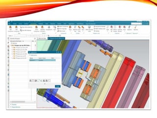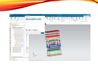 The document provides an overview of NX CAD software, detailing its capabilities in design, engineering analysis, and manufacturing. It highlights the software's advanced tools for product development, including 3D modeling, assembly design, and drafting, and demonstrates its benefits in improving productivity and reducing development time. Additionally, it outlines specific functionalities such as sketching, feature operations, and project management for mold design.