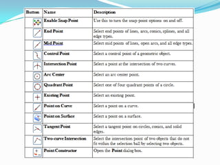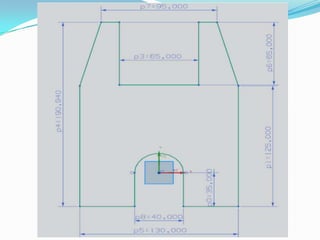 The document provides an overview of the NX7.5 basic training course, including how to get started with NX7.5, create and save part files, use the modeling interface, select and manipulate objects, create sketches, apply geometric and dimensional constraints, and perform basic extrude and revolve swept features. It describes the key interface elements and commands for navigating the software and constructing 3D models.
