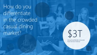 The document discusses various strategies and technologies for leveraging big data in the casual dining market and beyond, emphasizing the importance of real-time data analysis and customer engagement. It highlights the use of Azure services in various case studies, showcasing how companies like Rolls-Royce, Jet.com, and Carnival Maritime optimize operations, enhance customer experience, and streamline decision-making through advanced analytics and machine learning. The document also touches on the need for secure, scalable cloud solutions that can handle diverse data sources and integrate seamlessly into existing business processes.