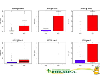 方法・目的 ➲ 小児急性神経疾患を対 象に、血清/髄液 S100B、NSE、tTau 測定 ➲
