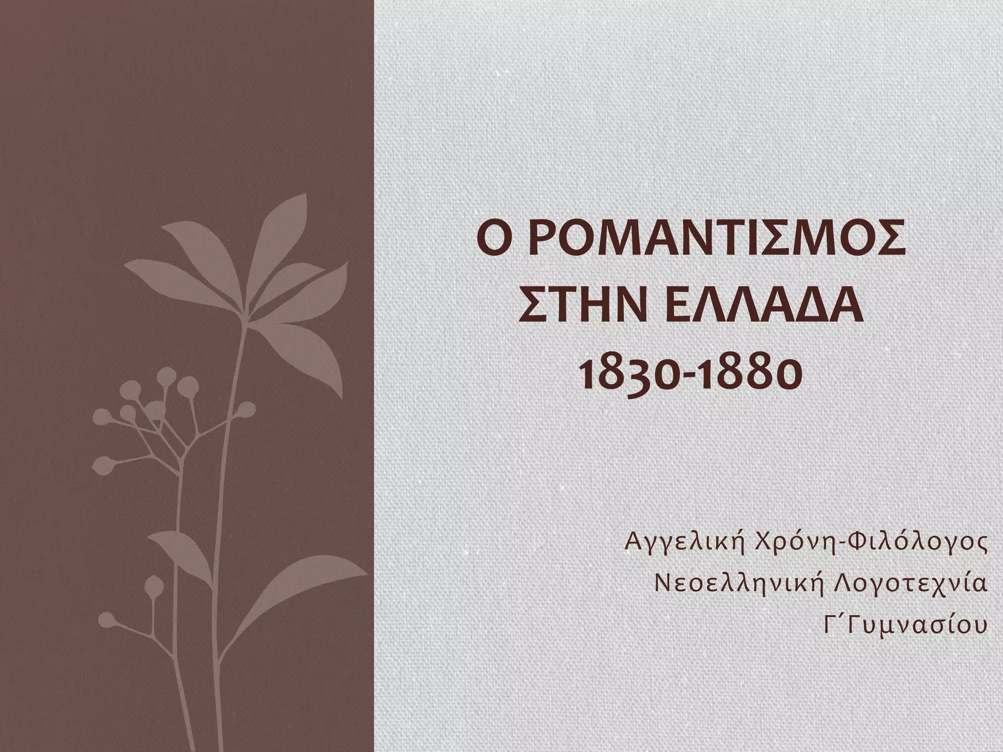 Ο Ρομαντισμός στονΕλλαδικό Χώρο