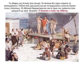 Το έδαφος τηςΑττικής ήταν φτωχό. Οι κάτοικοι δεν είχαν κτήματα να