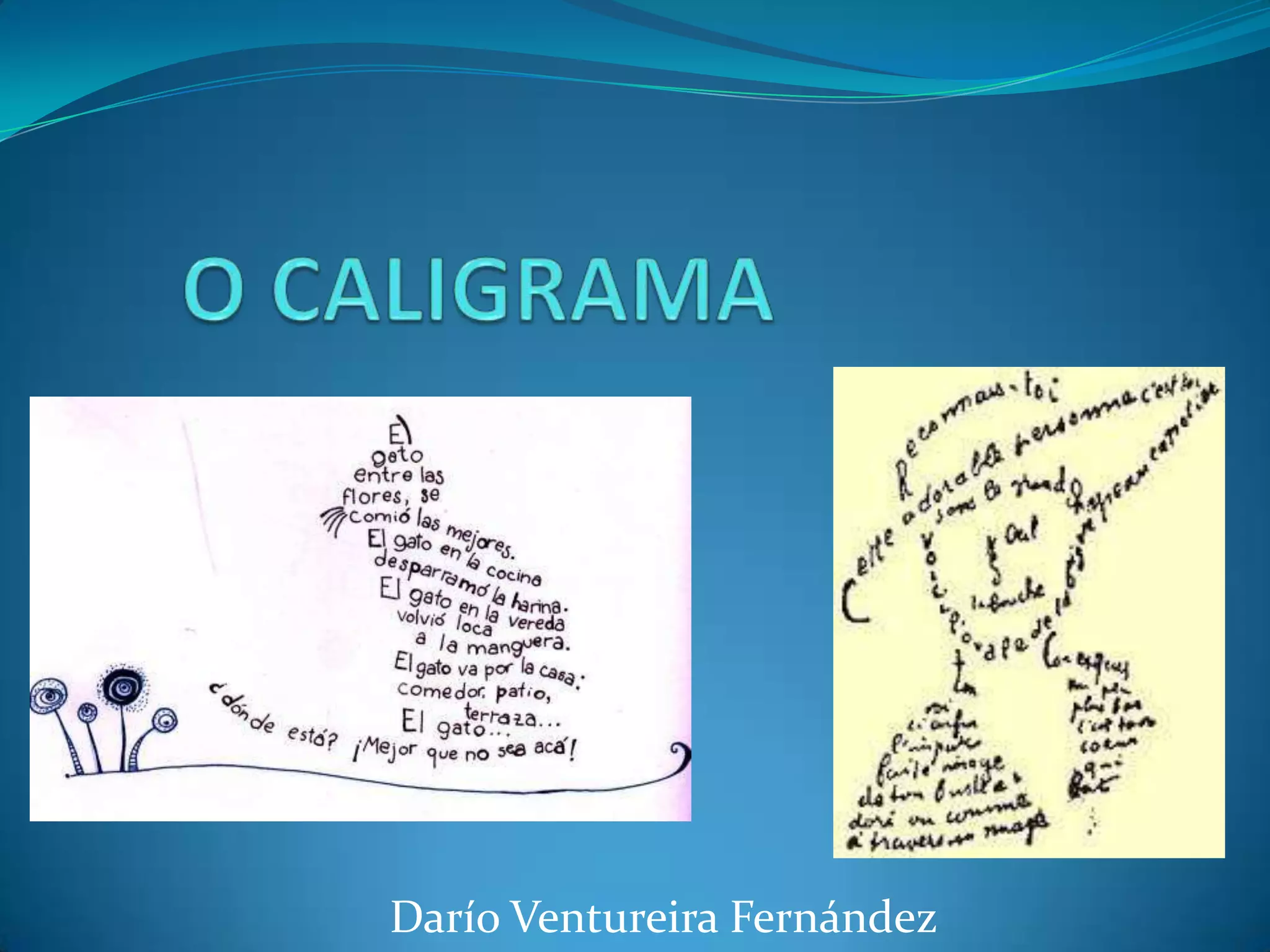 O caligrama é un poema, frase ou palabra, cuxo propósito é formar unha figura sobre o que este poema, no