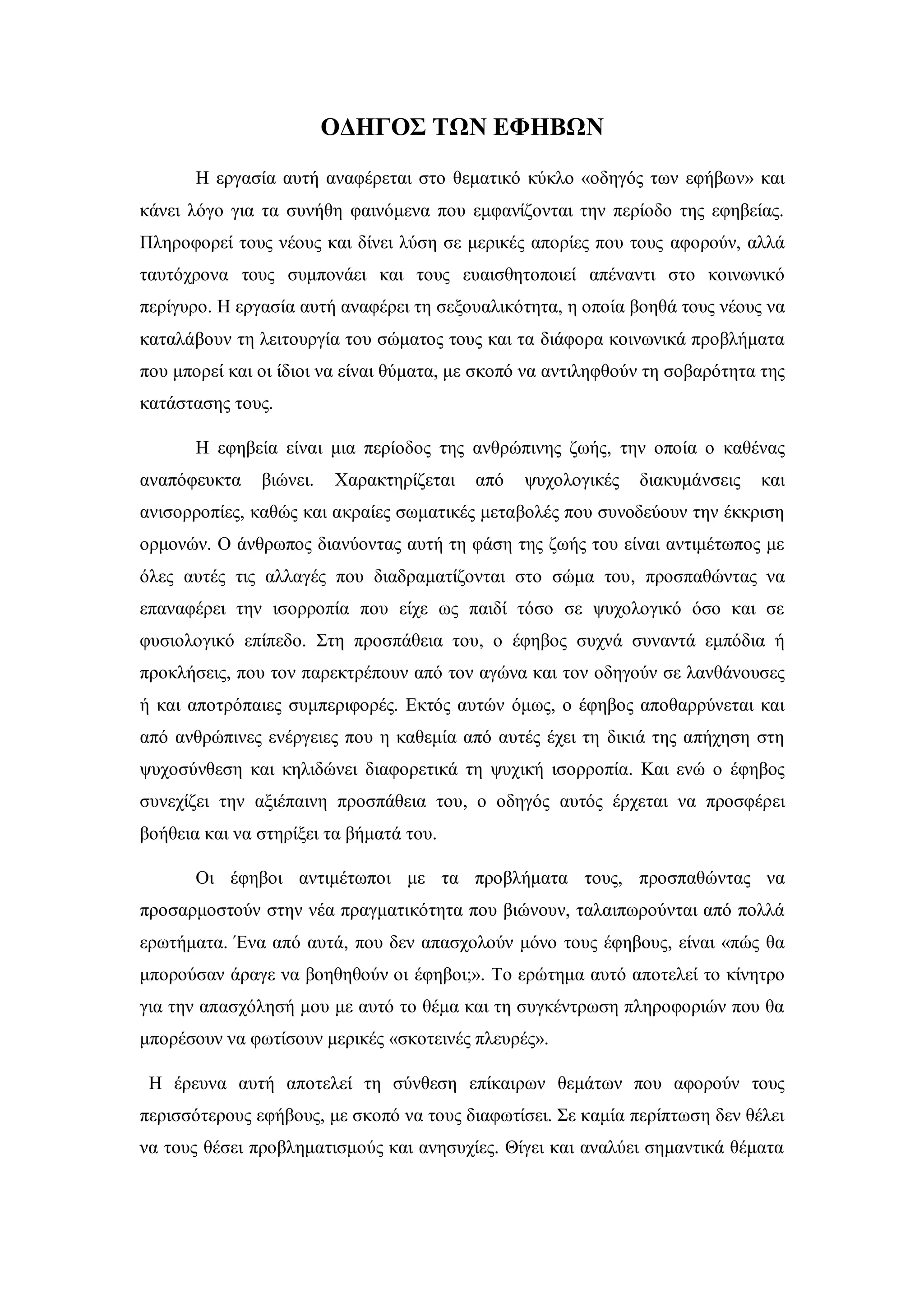 Ηεργασία αυτή αναφέρεται στο θεματικό κύκλο «οδηγός των εφήβων» και