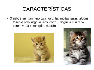 O gato éun mamífero carnívoro, hai moitas razas, algúns