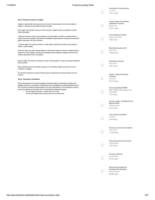The document contains notes for an O level accounting course. It discusses the accounting cycle which involves recording transactions, posting to ledgers, extracting a trial balance, and making closing entries and adjustments. It specifically covers bad debts and provisions for doubtful debts, explaining how to account for actual bad debts written off compared to changes in the provision for doubtful debts.