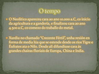 O Neolíticoapareceu cara ao ano 10.000 a.C, co inicio