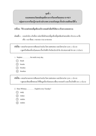 เฉลยแบบทดสอบวัดผลสัมฤทธิ์ทางการเรียนเตรียมสอบ O-NET