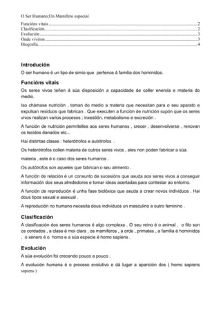 O Ser Humano;UnMamífero especial