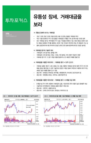 - 최근 거래대금 증가는 투자자들의 주가 상승 기대감을 반영하고 있는 만큼 유동성 장세의 신호