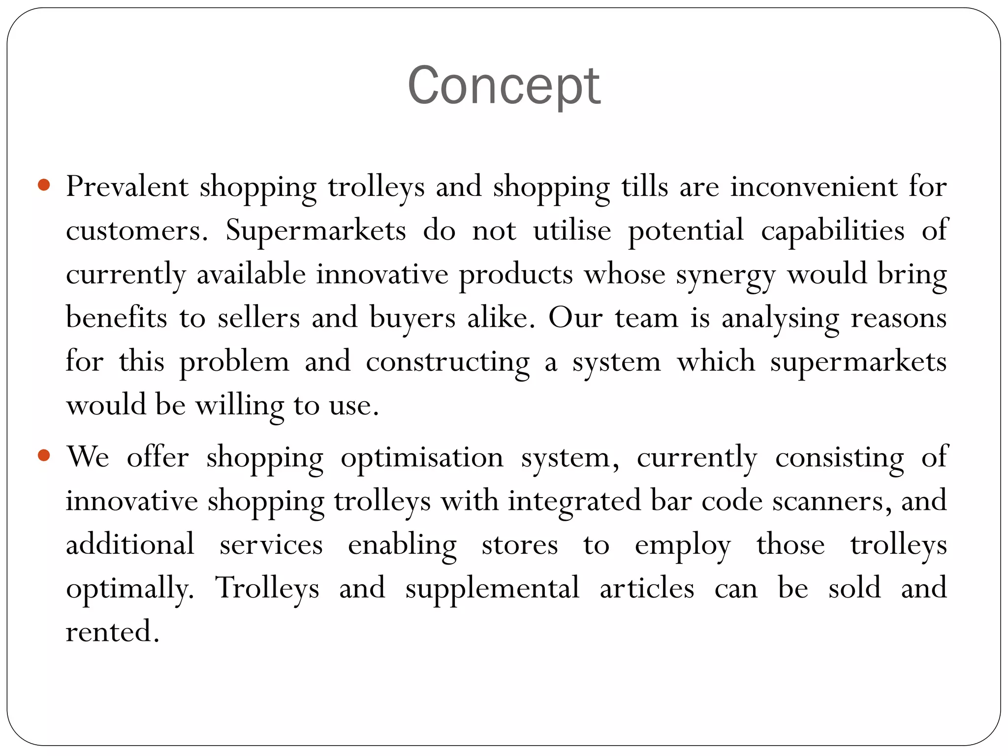 This document summarizes market research conducted for a shopping cart optimization project in Germany. Surveys were conducted with supermarket managers and customers to understand pain points and opportunities. The German shopping cart market is estimated at 70 million USD annually. Most managers and customers expressed frustration with long checkout lines and wanted improvements to cart design and functionality to make shopping easier. Common suggestions included reducing cart weight and width, improving wheels, and adding features like a phone holder or shopping list organizer. The research indicates customer demands could influence stores to update outdated cart systems.