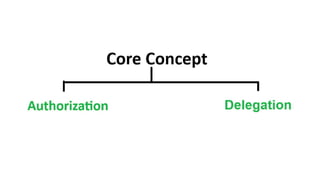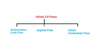 The document discusses OAuth 2.0 as a delegated authorization standard, highlighting its core components such as resource owners, clients, and authorization servers. It outlines necessary security practices, common OAuth flows, and pitfalls to avoid in order to maintain user privacy and security. Additionally, it provides examples of real-world applications, notably using Google OAuth 2.0.