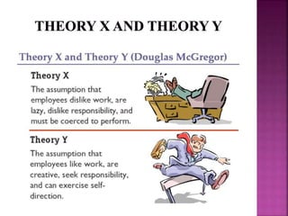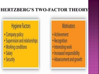 This document discusses motivation concepts and theories. It summarizes motivation as the processes that account for an individual's intensity, direction, and persistence of effort towards attaining a goal. Several motivation theories are outlined, including Maslow's hierarchy of needs, expectancy theory, equity theory, reinforcement theory, and goal-setting theory. The document also discusses intrinsic and extrinsic motivation, self-efficacy, flexible work arrangements, variable pay programs, benefits, and employee recognition programs as ways to motivate employees.