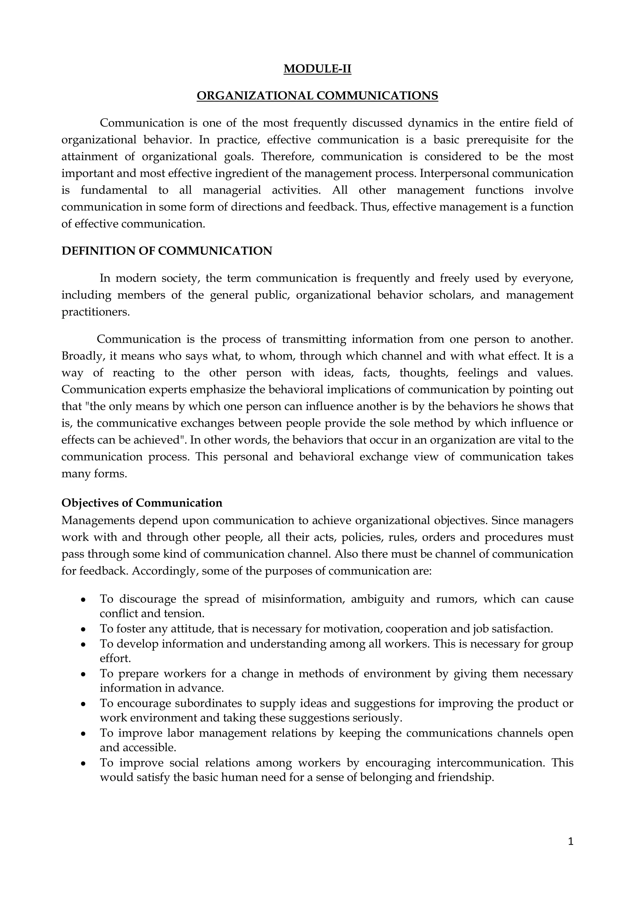 This document discusses organizational communication. It begins by defining communication and explaining that communication is the process of transmitting information from one person to another. It then discusses the objectives, importance, and forms of communication within organizations. Specifically, it explains that communication allows organizations to achieve goals, coordinate actions, make decisions, and express emotions. The document also summarizes the communication process, types of communication (written, oral, nonverbal), and forms of organizational communication (vertical, informal). Finally, it discusses gateways and barriers to effective communication like noise, timing, channels, information, and structure.