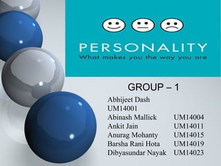 The document discusses the Big Five model of personality, which describes human personality based on five dimensions: Neuroticism, Openness to Experience, Agreeableness, Conscientiousness, and Extraversion. Each dimension is defined in terms of the traits associated with both high and low levels of that personality factor. The Big Five model provides a comprehensive yet concise framework for understanding personality.