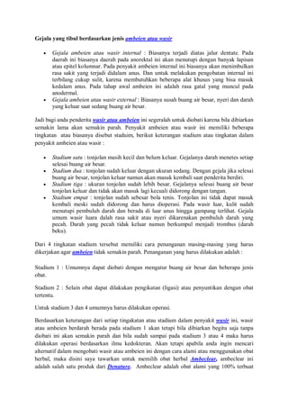 Obat wasir cara alami meliputi pola hidup sehat, diet serat tinggi, hindari makanan pedas dan berlemak, minum air putih, olahraga teratur, dan menjaga kebiasaan BAB. Faktor penyebab wasir lainnya adalah duduk lama, diare kronis, hormon kehamilan, keturunan, seks tidak wajar, sembelit, tekanan darah rendah, gaya hidup buruk, dan kurang olahraga. Gejalanya bervariasi tergantung j