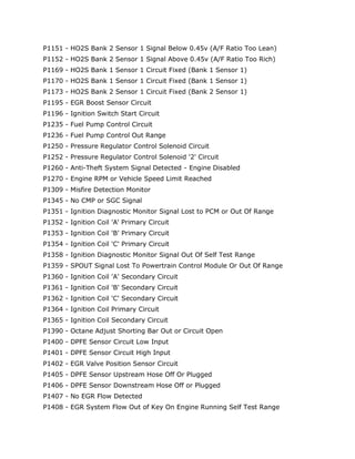 The document lists various OBD-II trouble codes specific to Mazda, detailing different sensor and circuit issues related to the vehicle's performance. Each code corresponds to a specific diagnostic problem, ranging from mass airflow sensor inconsistencies to transmission control faults. This comprehensive list serves as a guide for diagnosing and troubleshooting automotive issues in Mazda vehicles.
