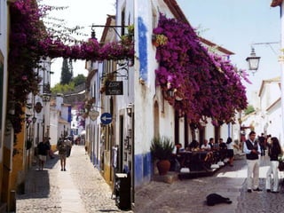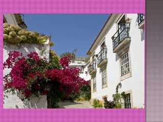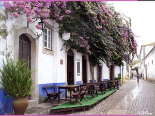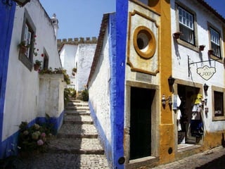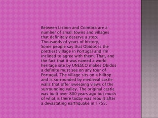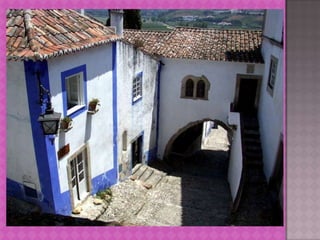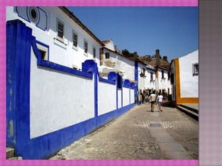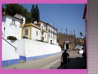Obidos is renowned as one of the prettiest villages in Portugal and is recognized as a UNESCO World Heritage site. It features a hilltop location surrounded by medieval castle walls, providing impressive valley views. The original castle dates back over 800 years but was largely rebuilt after an earthquake in 1755.