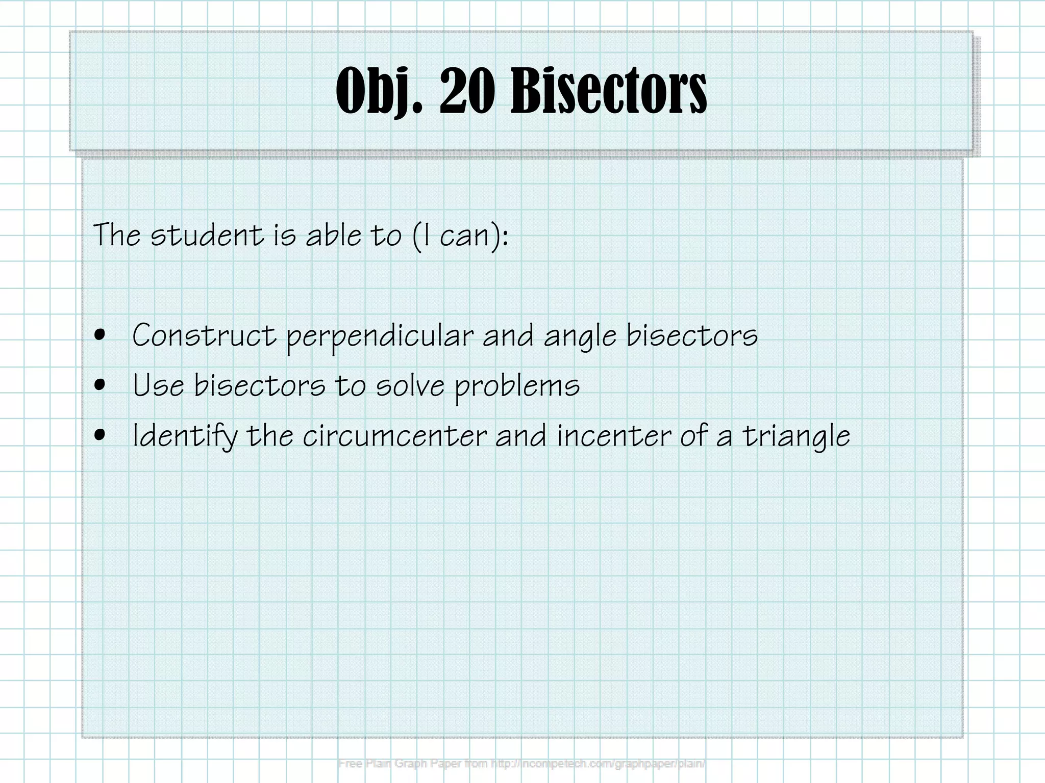 The document covers the construction of perpendicular and angle bisectors, their applications, and properties related to triangles, such as the circumcenter and incenter. It includes theorems regarding the equidistance of points to segment endpoints and angle sides when on a bisector. Examples are provided to illustrate these concepts and calculations.