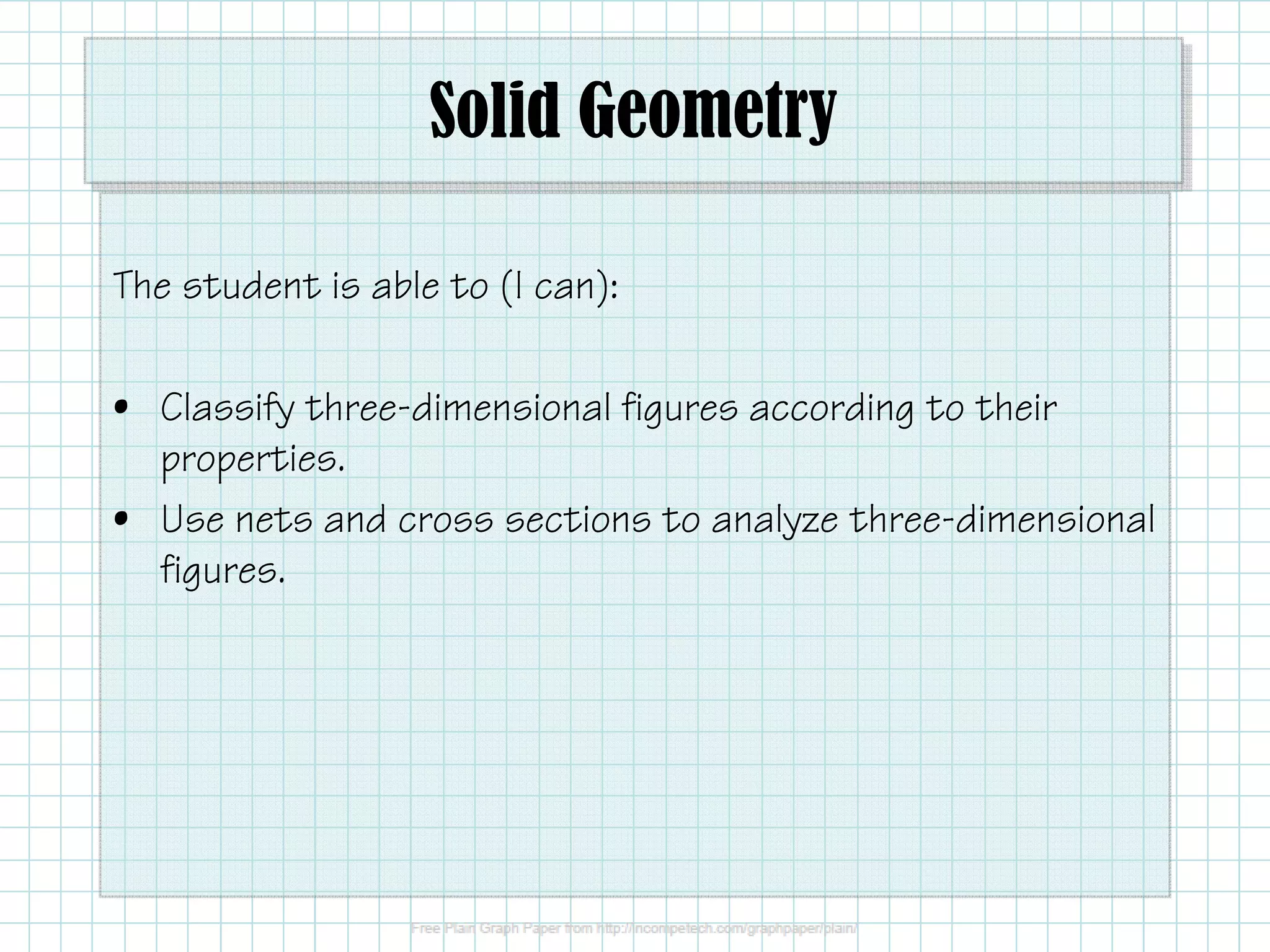 - Using nets and cross sections to analyze three-dimensional shapes.
