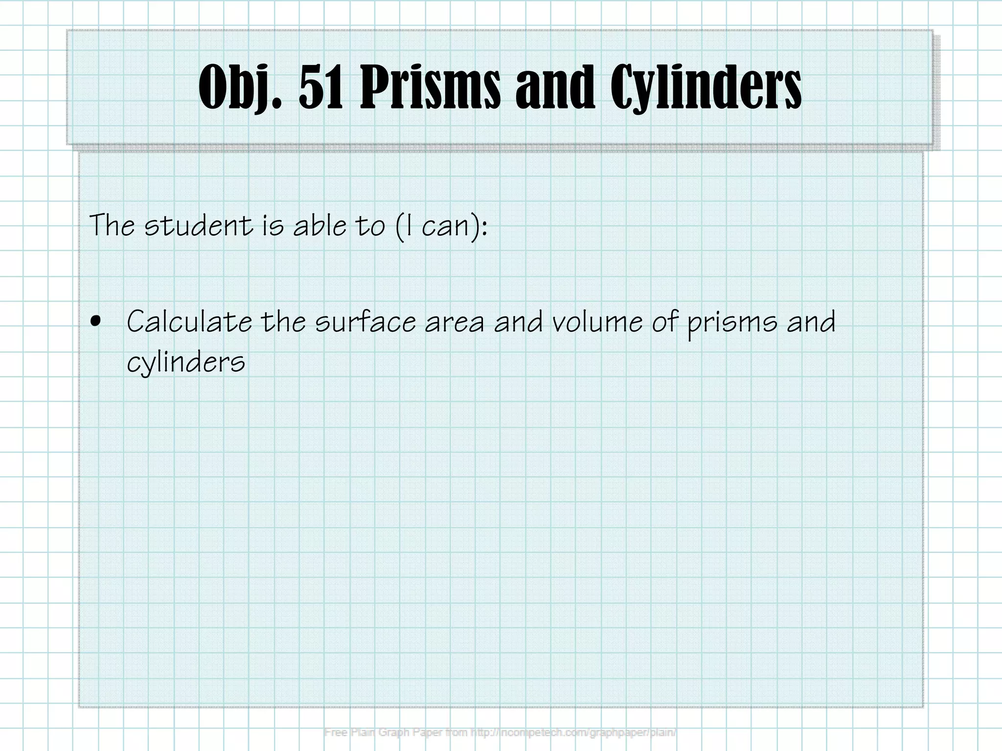 This document provides information about calculating the surface area and volume of prisms and cylinders. It defines right and oblique prisms, and explains that the volume formula is the same for both as V=Bh, where B is the base area and h is the altitude or height. The same is true for cylinders, where the volume is V=πr^2h. Examples are given to find the volume of various prisms and cylinders. Formulas are also provided for calculating the lateral and total surface area of prisms as S=L+2B, where L is the lateral area calculated as L=Ph, and B is the base area. For cylinders, the lateral area formula is L=C*h,