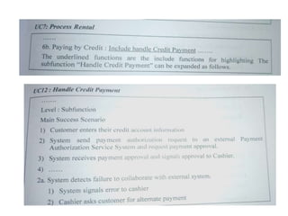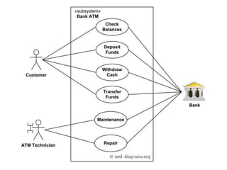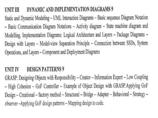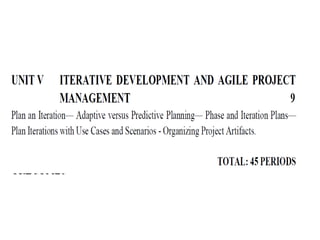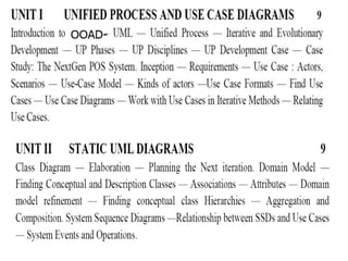 The document provides a comprehensive overview of principles of object-oriented analysis and design (OOAD), outlining the stages of software development including analysis, design, implementation, testing, and maintenance. It discusses the Unified Process (UP) for software development, detailing its iterative nature, phases, disciplines, and the use of the Unified Modeling Language (UML) for modeling software systems. Additionally, it includes case studies such as a point-of-sale (POS) system, emphasizing use case diagrams to illustrate system interactions and requirements.