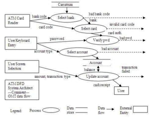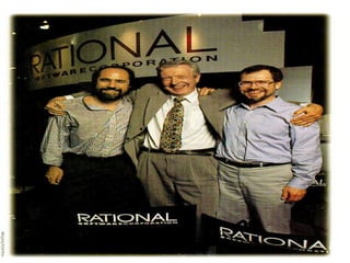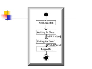 Rumbaugh's Object Modeling Technique (OMT) is an object-oriented analysis and design methodology. It uses three main modeling approaches: object models, dynamic models, and functional models. The object model defines the structure of objects in the system through class diagrams. The dynamic model describes object behavior over time using state diagrams and event flow diagrams. The functional model represents system processes and data flow using data flow diagrams.