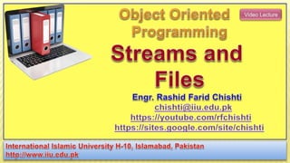 The document provides a comprehensive overview of stream classes in C++, describing how streams facilitate data flow and allowing the use of overloaded operators for data manipulation. It covers the stream class hierarchy, specific classes for file I/O operations such as ifstream and ofstream, and details formatted vs. binary I/O for efficiency when storing data. Additionally, it includes examples of writing and reading data, illustrating the handling of command-line arguments and the structure of objects for I/O operations.