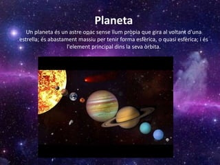 Un planeta ésun astre opac sense llum pròpia que gira al voltant d'una
