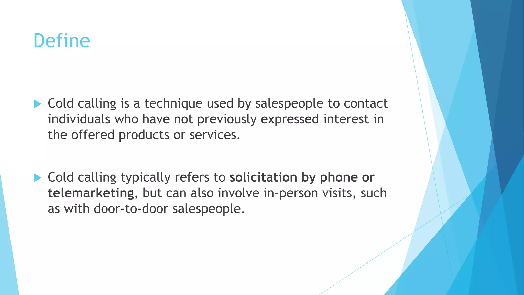 This document provides guidance on handling sales objections. It defines cold calling and sales objections. For objections, the key is to fully listen to understand the true concern, then respond properly while confirming the objection has been satisfied. Common objections include need, urgency, trust, and money. For money objections, discuss value rather than costs. Effective handlers choose words wisely, understand the root objection, and get back to emphasizing the solution's value.